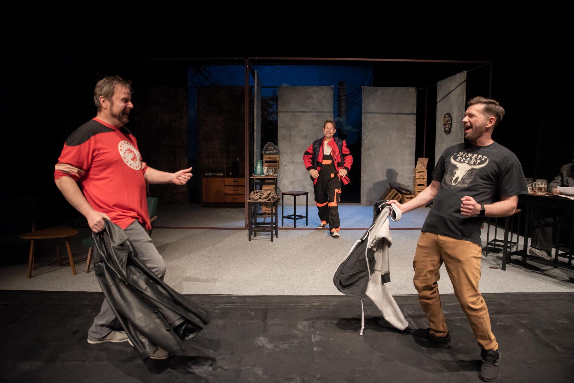 Hra má tři překladatele – Herbert Kaluza a Marek Gierszał vytvořili polský text, který Izabela żur proměnila do „werkové“ verze „po naszymu“, text tak jasně komunikoval především s místním divákem. A to i skrze další znakové roviny – postava Adama například nadšeně fandí třineckým Ocelářům, kteří v den premiéry hráli s pražskou Spartou; pro všechny v sále donucené trávit večer v divadle, namísto u televizních obrazovek, hlásil průběžný stav zápasu, za což mu patří dík. Na plátno za scénou byl také promítán obraz železáren, čímž se opět vracím k odkazu na situaci kolem Liberty Ostrava.
