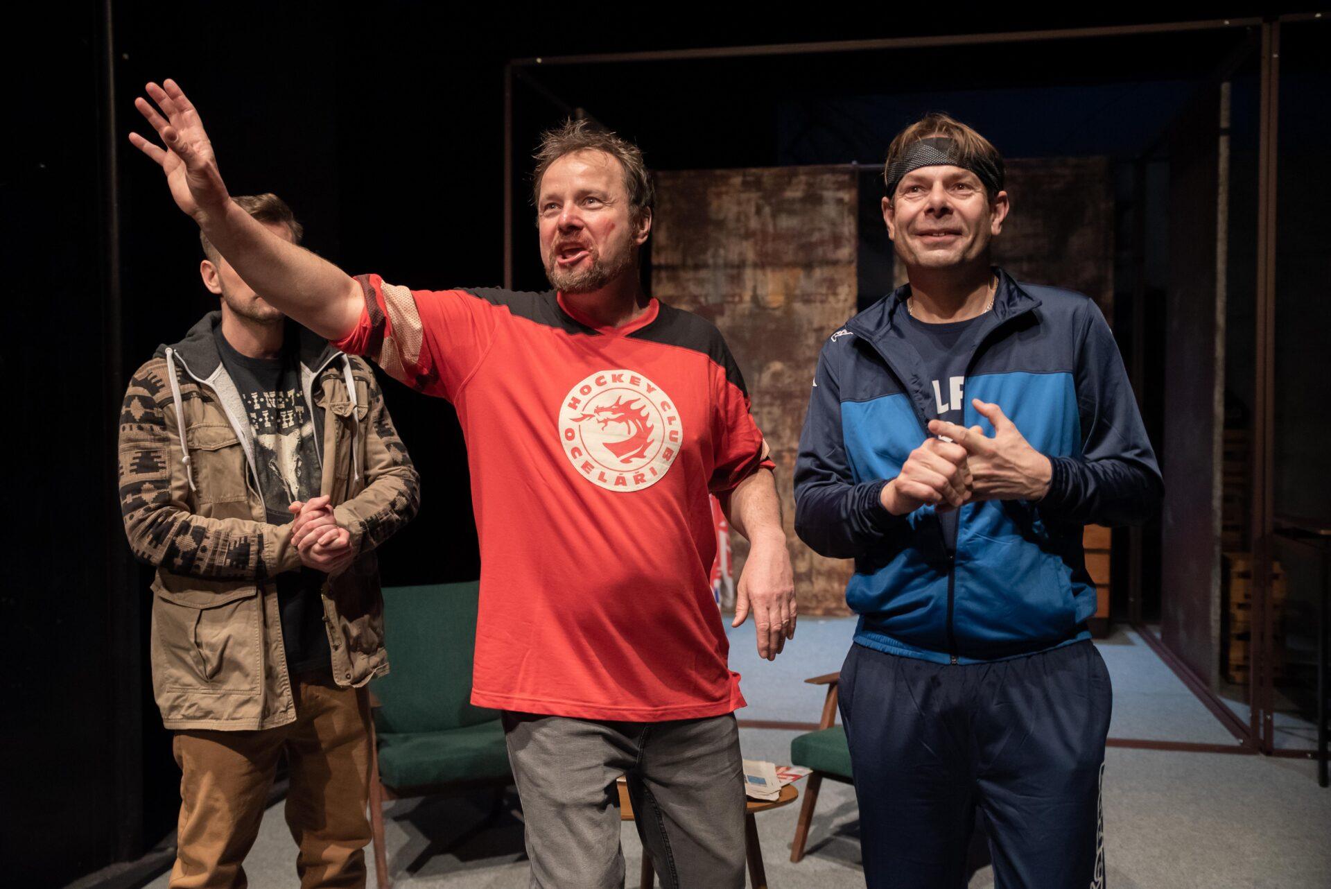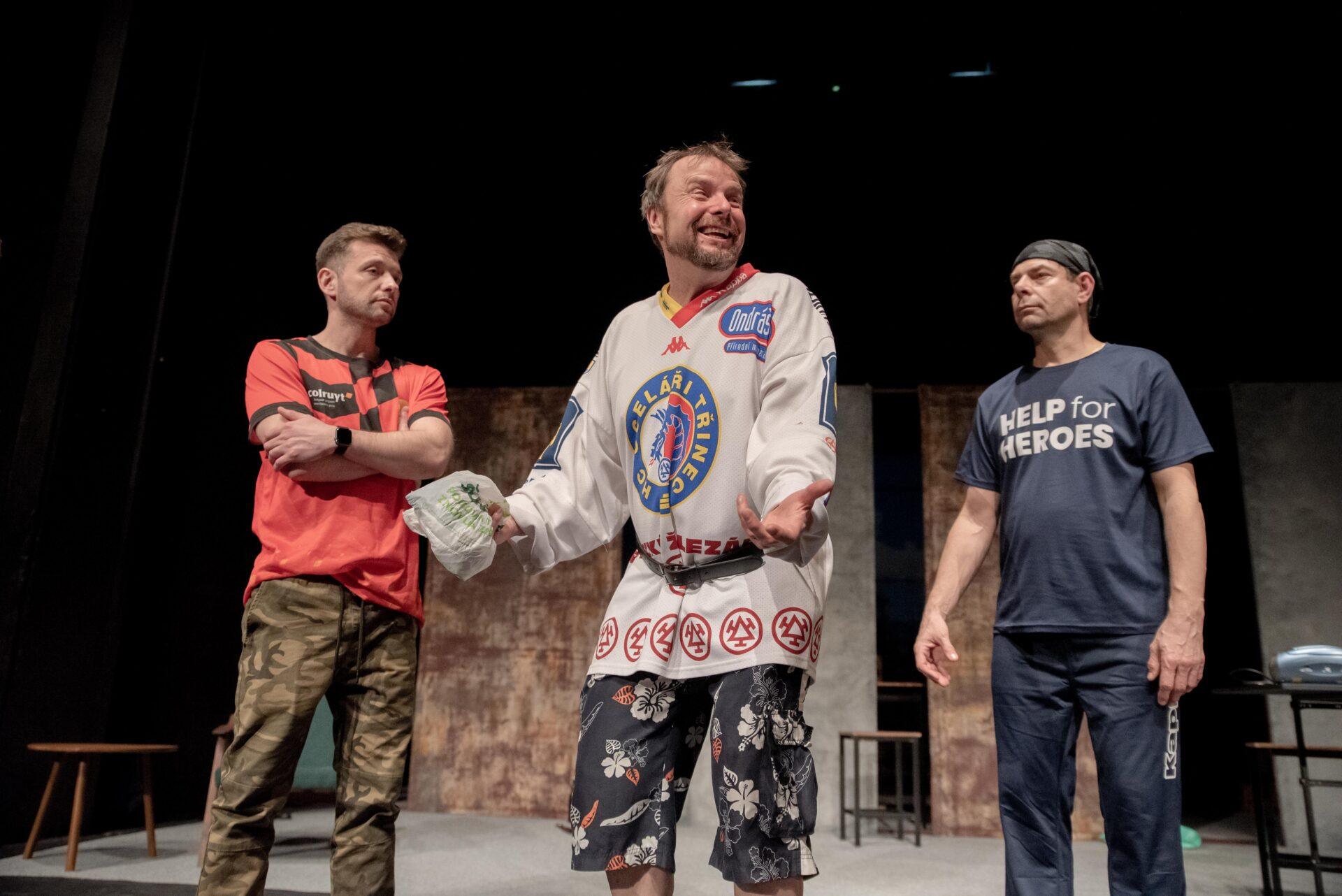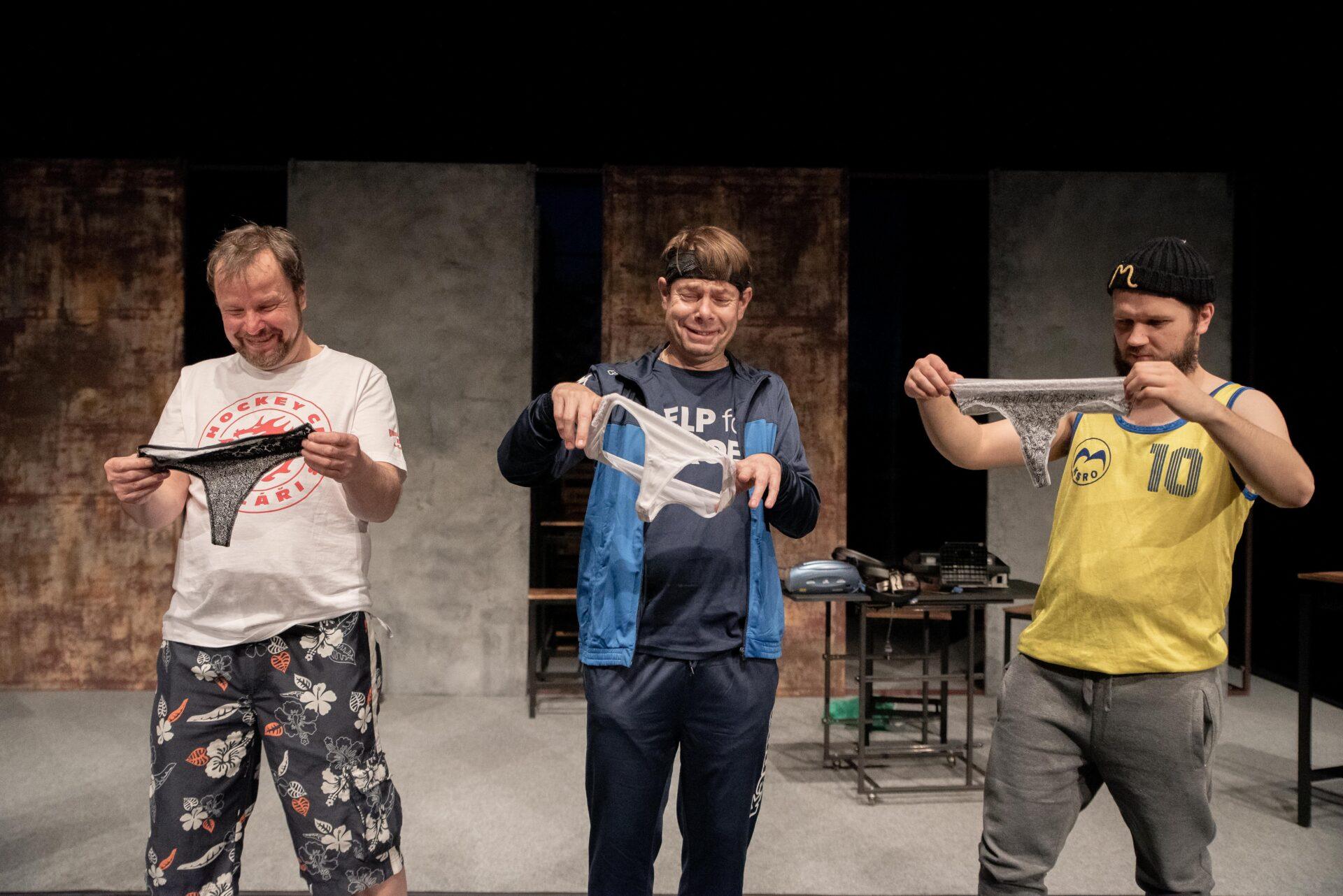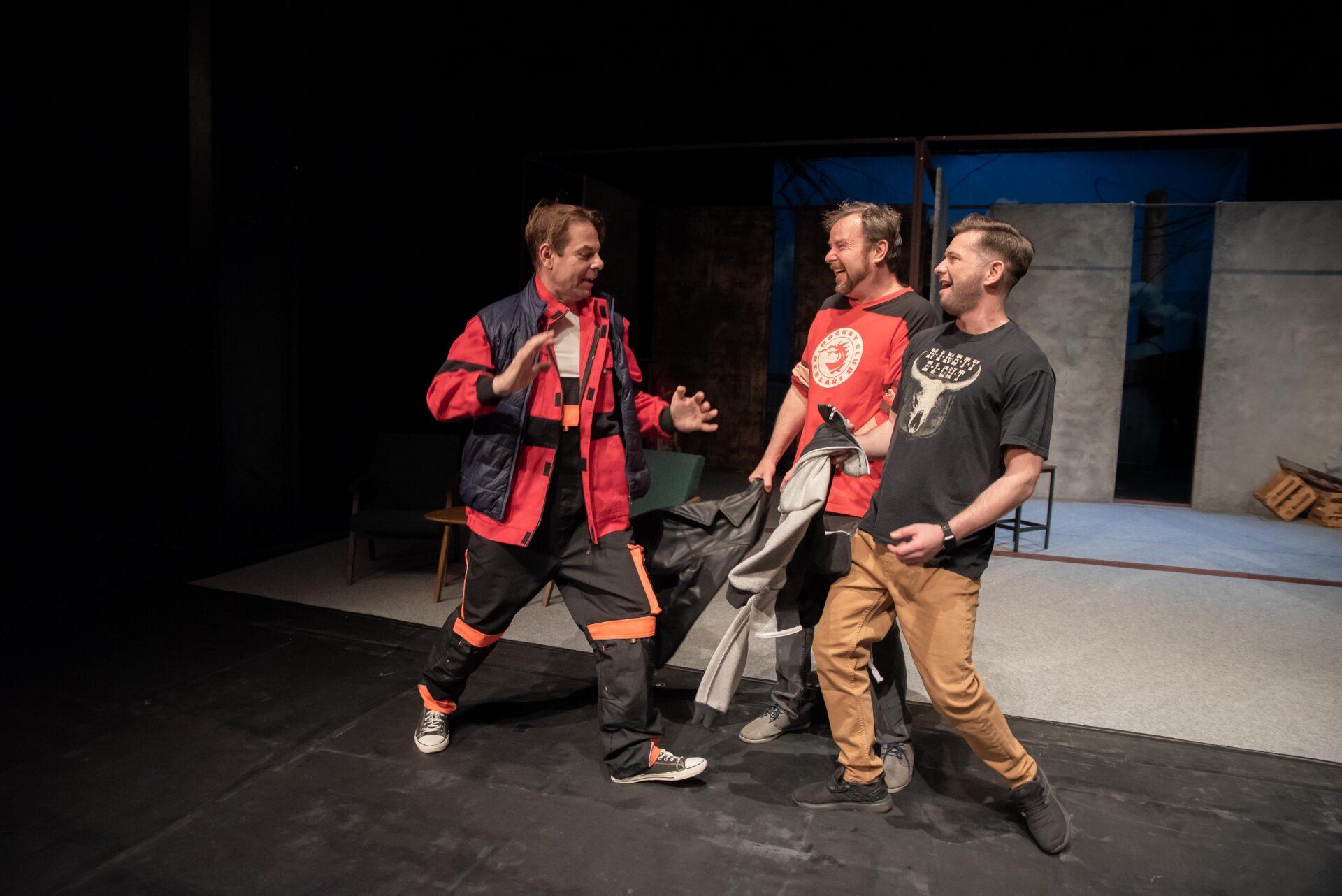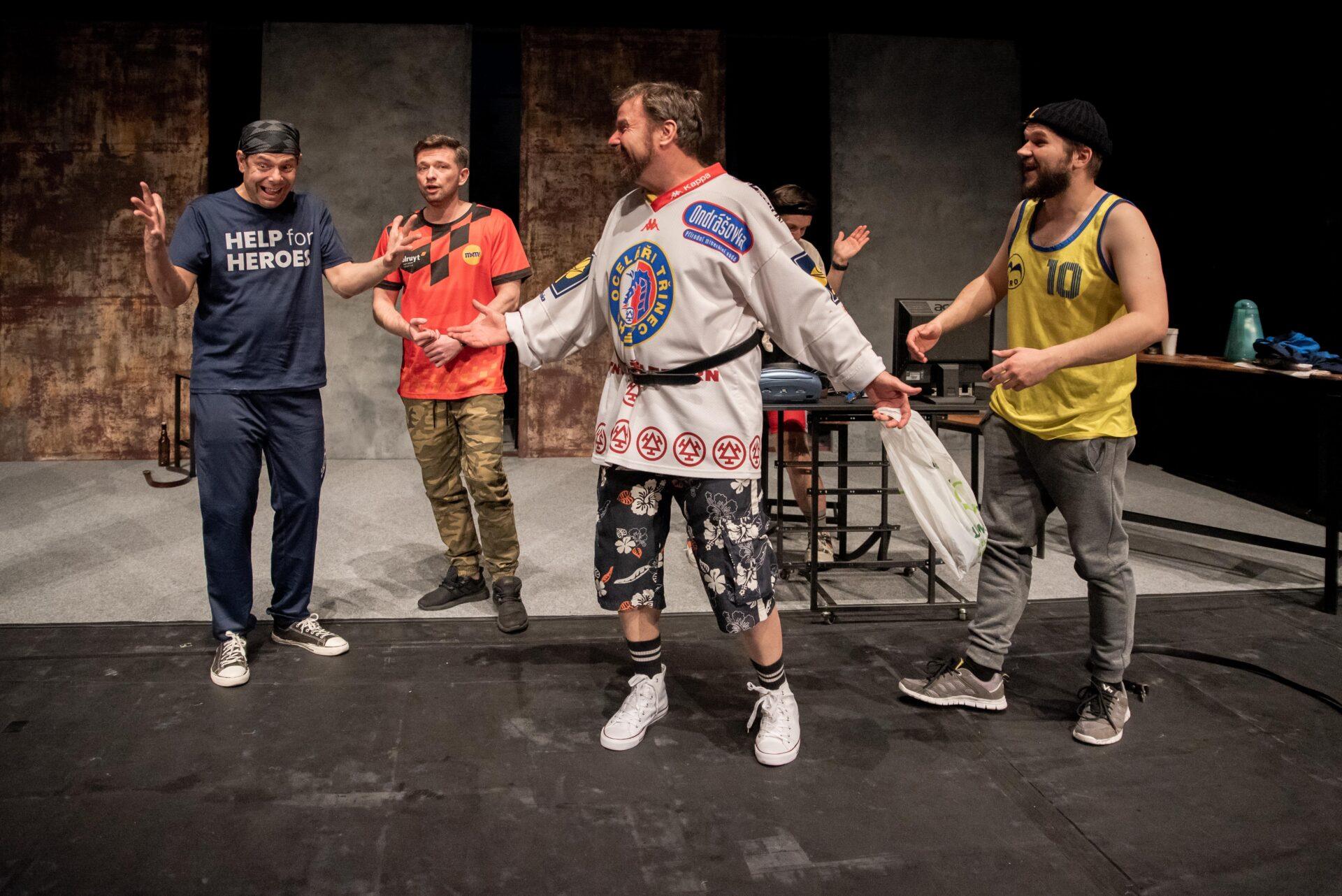 Hrdinové příběhu se snaží vyrovnat s nelehkou situací způsobenou ztrátou zaměstnání, která až nápadně připomíná aktuální krizi kolem hutě Liberty Ostrava ohrožující na 6000 zaměstnanců, situace se tak může týkat i některých z těšínských diváků, nebo jejich blízkých. Adam (Bogdan Kokotek) nadšeně investuje do pochybných podniků a potýká se s exekutory a věřiteli, kteří ho ohrožují na životě. Současně mu bývalá partnerka chce zakázat styky se synem, kterého sice (jak vyplývá z telefonních hovorů) moc dobře nezná, ale skutečně mu na něm záleží. Kokotek vykresluje Adama jako beznadějného optimistu vrhajícího se do života s úsměvem. Právě on iniciuje nápad založit striptýzovou skupinu, která by mohla jemu i přátelům, Pawłowi (Marcin Kaleta) a Jurowi (Grzegorz Widera) pomoct získat tolik potřebné peníze. Kaleta skvěle přechází mezi dvěma rovinami tvořícími Pawłowu osobnost – na jednu stranu macho připravený rozdávat rány a komandovat ženy, na druhou podvedený manžel, pravděpodobně impotentní, jehož nízké sebevědomí vychází z rozměru jeho přirození. Vyvstává tak zde nejen určitá forma pokrytectví, ale také problematika sebeúcty, jejíž absence se projevuje napadáním druhých a snahou vytvořit iluzi moci. Jura zprvu působí jako podpantoflák, který manželce půl roku zatajuje ztrátu zaměstnání ve strachu z reakce. Postupně se však obraz situace proměňuje skrze míru něhy a nadšení, kterou Widera vložil do Jurova joggingu i promluv o manželce, vytvořil tak postavu muže, který se navzdory nešikovnosti a potencionálnímu výsměchu přátel nebojí dělat to, co ho jednoduše baví. Oproti Pawłowi je jeho ostych při svlékání jen přirozeným studem a největším problémem se tak ukazuje váznoucí komunikace.